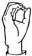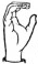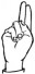 На ћирилици написано САНДРА ГОДОЧЕВИЋ састоји се из 15 слова [?]. Исписано ћириличном једноручном азбуком за глувонеме: